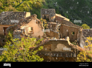Quello che era l’antico paese, a 320 metri di altitudine, è stato definitivamente abbandonato nel 1971, dopo che, tre anni prima, era stato dichiarato inabitabile: la popolazione era infatti migrata leggermente più a valle formando un nuovo piccolo centro dal quale si poteva ammirare il vecchio paese fantasma.